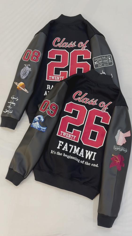 احتفل بمناسبة تخرجك بلمسة شخصية وفريدة جاكيت السينيور الخاص بنا مصمم خصيصاً ليكون ذكرى لا تنسى حيث يمكنك تخصيصه بتطريز اسمك بشكل أنيق وفريد.